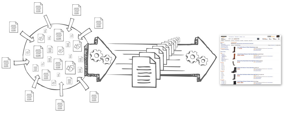 Fig. 1 Schema delle due fasi di funzionamento del motore di ricerca di Amazon. Tratto dal sito www.a9.com