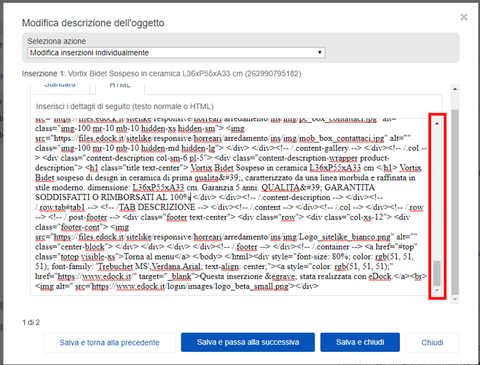 - Dopo essere entrato in “Modifica” > “Modifica i campi” > “Descrizione dell’oggetto”, seleziona “Modifica inserzioni singolarmente”