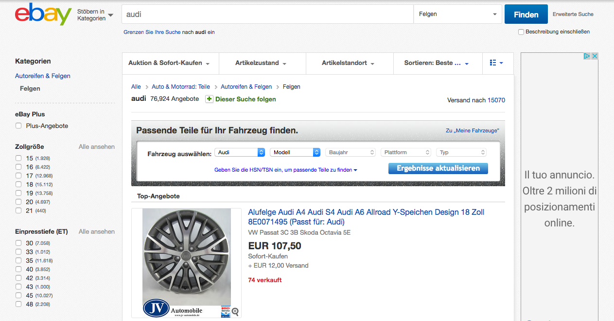 Ogni acquirente online, quindi, potrà cercare il suo ricambio o accessorio auto a partire dal modello di vettura (come accade oggi su eBay.de).