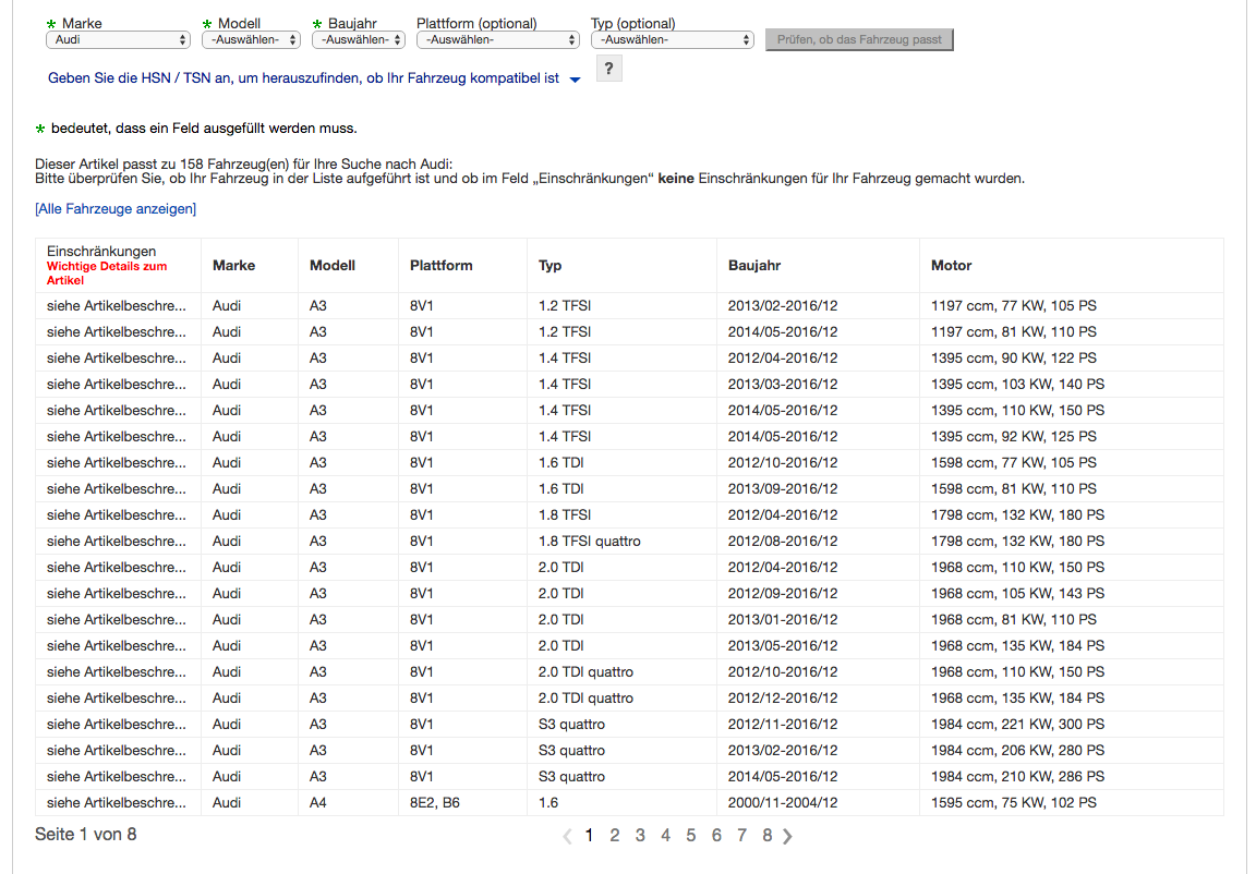 La soluzione è il nuovo strumento detto "Fitment" (Compatibilità nel montaggio, diremmo in italiano) che darà modo al venditore di specificare, per un'unica inserzione, un elenco di veicoli su cui può essere installato il pezzo di ricambio, e per l'acquirente di trovare più semplicemente il giusto ricambio auto online.
